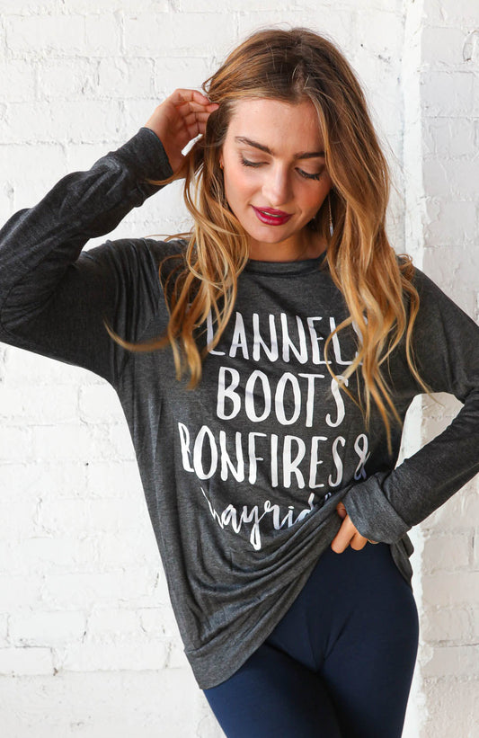 "Flannel, Boots, Bonfires"" Graphic Tee