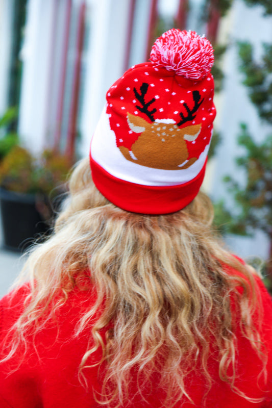"Oh Deer" Rudolph Reindeer Pom-Pom Beanie