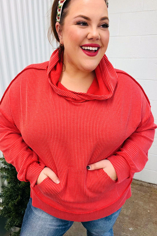 A New Day Red Mineral Wash Rib Knit Hoodie