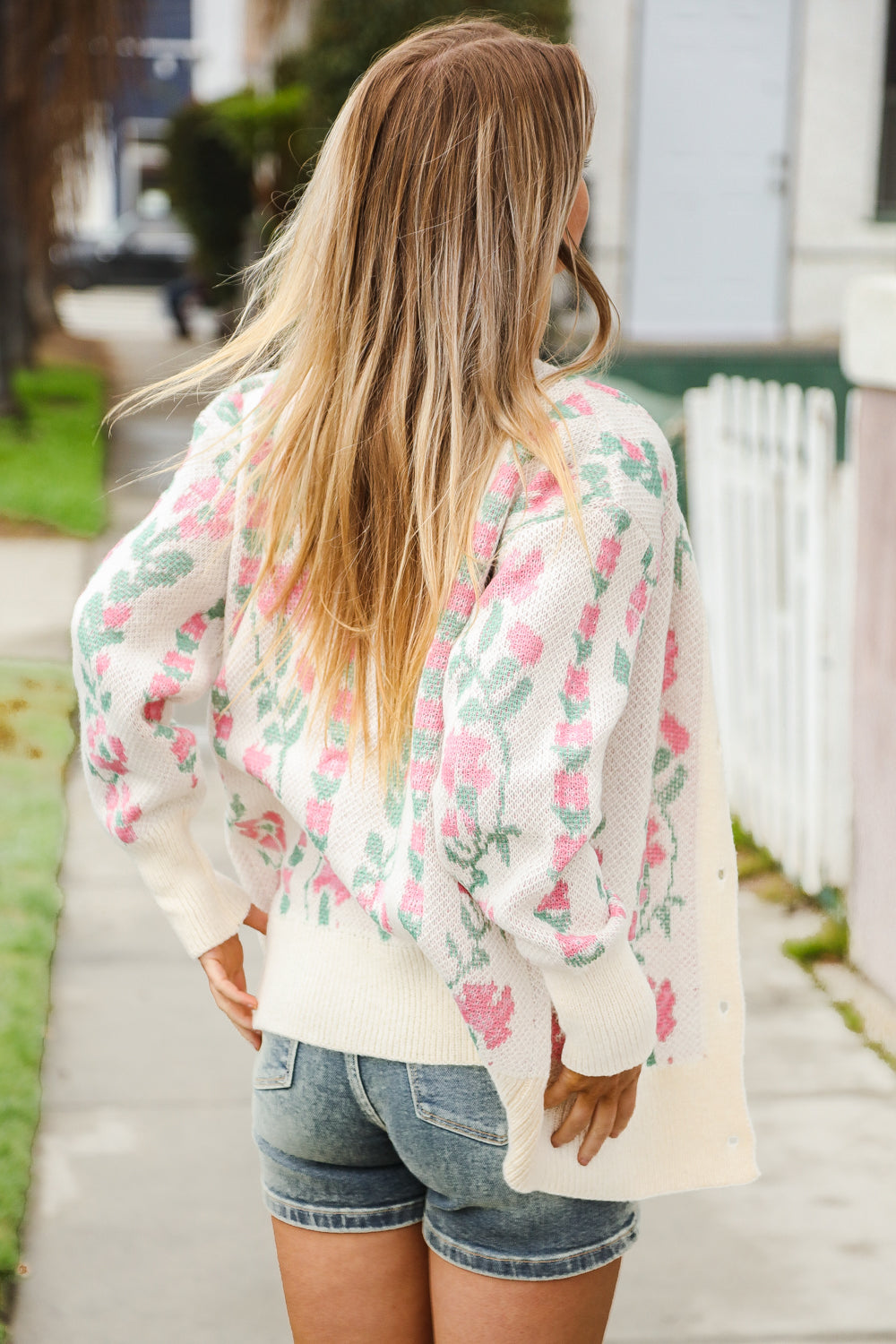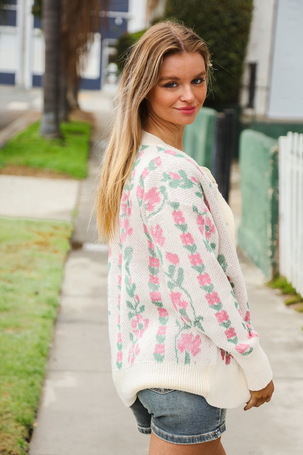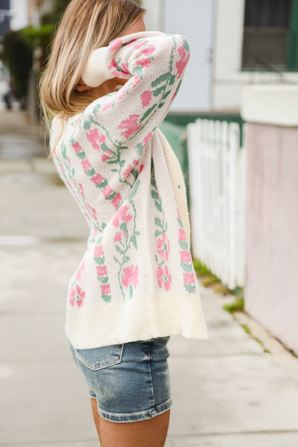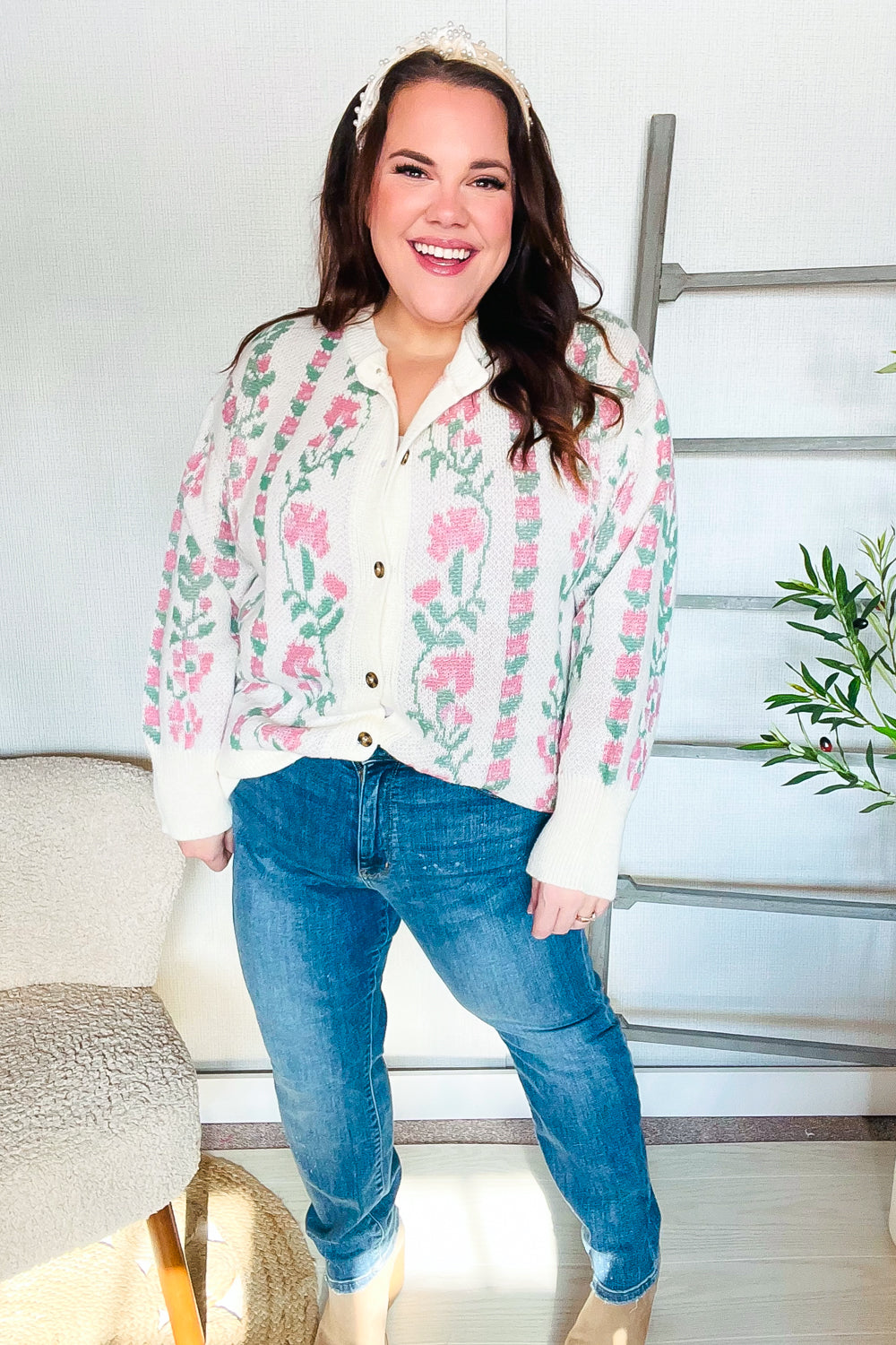 All For Love Ivory Jacquard Vertical Floral Button Down Cardigan